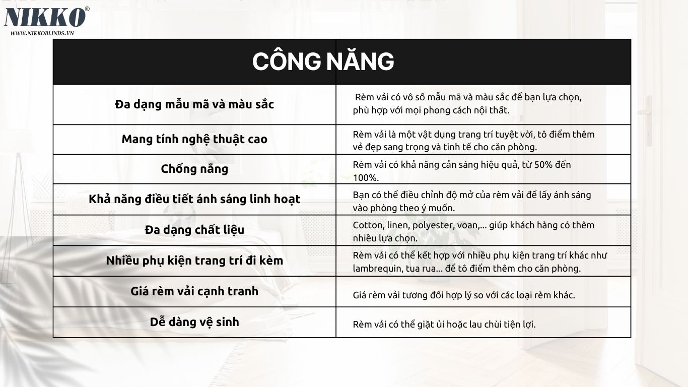 - Cho phép ánh sáng dịu nhẹ lọt qua khi mở rèm, tạo cảm giác thoáng mát và thư giãn.