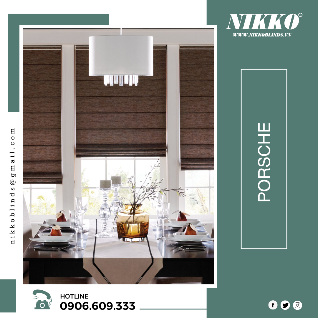 Rèm Roman Nâu Đất Kiểu Porsche NIKKOBLINDS sở hữu thiết kế hiện đại, sang trọng, phù hợp với nhiều không gian và vị trí khác nhau, mang đến sự tiện nghi và thẩm mỹ cho mọi nơi bạn đặt chân đến: