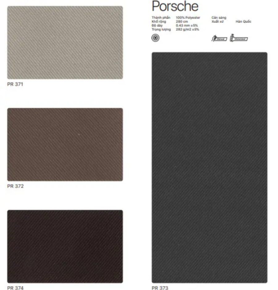 Bộ sưu tập màu của rèm Roman mã Porsche