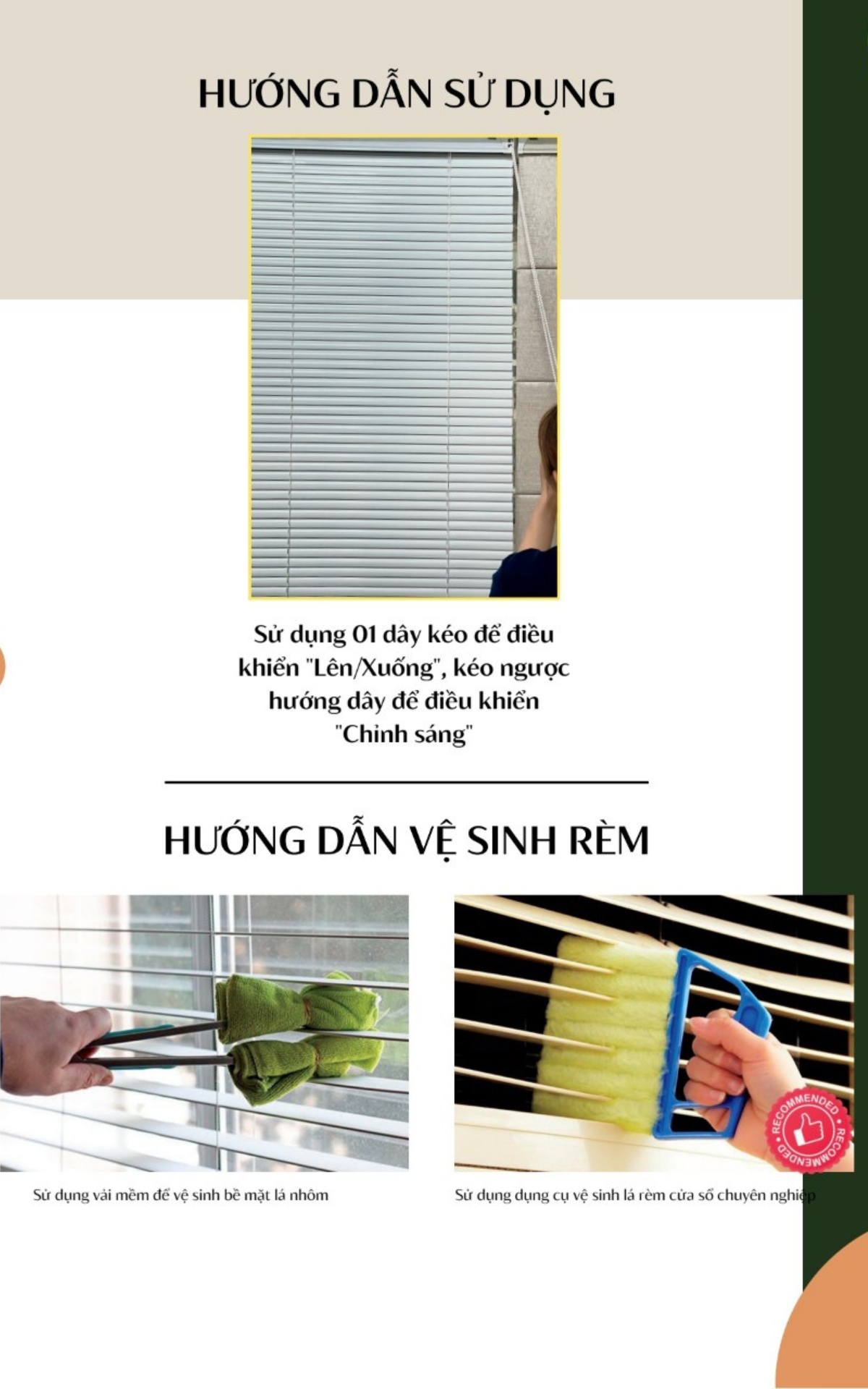 - Dễ dàng vệ sinh: việc vệ sinh rèm sáo nhôm thật đơn giản và dễ dàng, giúp rèm luôn sạch sẽ và giữ được màu sắc tươi mới