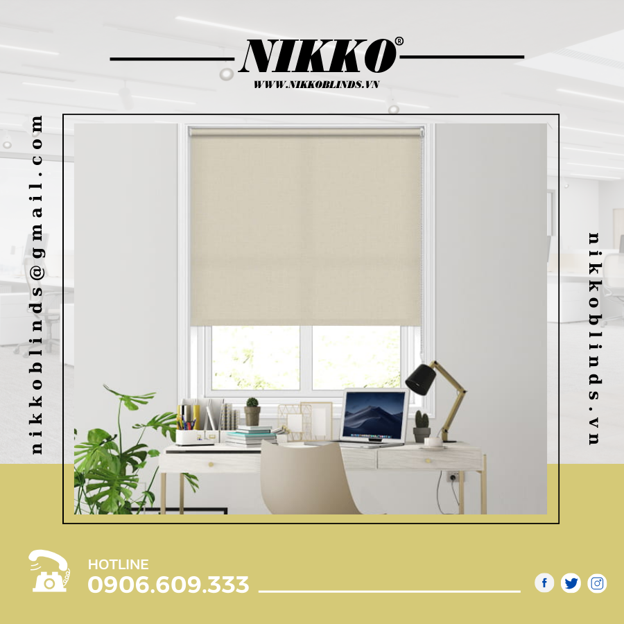 Rèm sáo cuộn màu be NIKKOBLINDS ứng dụng rộng rãi cho nhiều không gian như: Phòng khách, Phòng ngủ, Phòng bếp, Phòng học, Văn phòng, Làm vách ngăn,...để điều tiết ánh sáng, giúp cản sáng tuyệt đối.